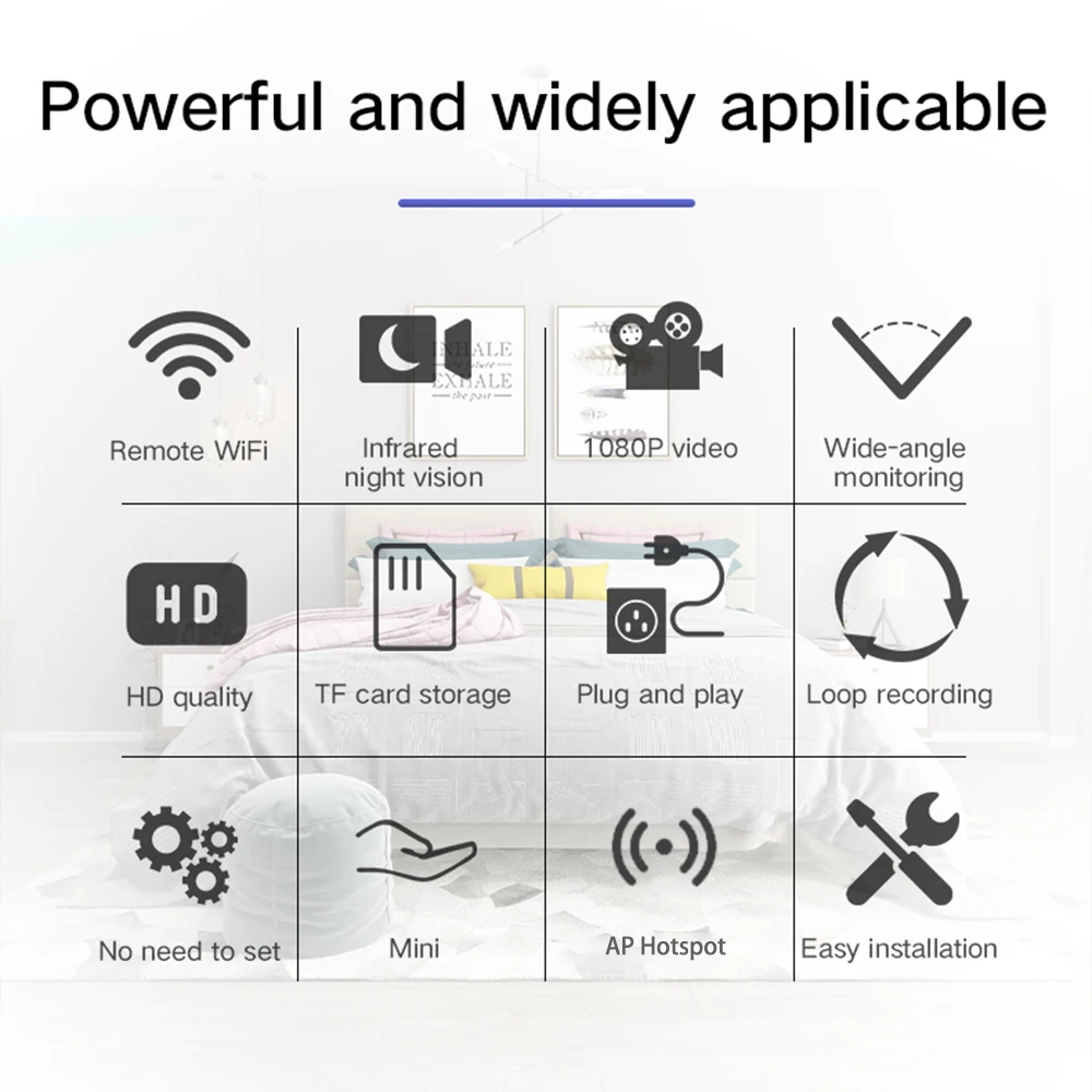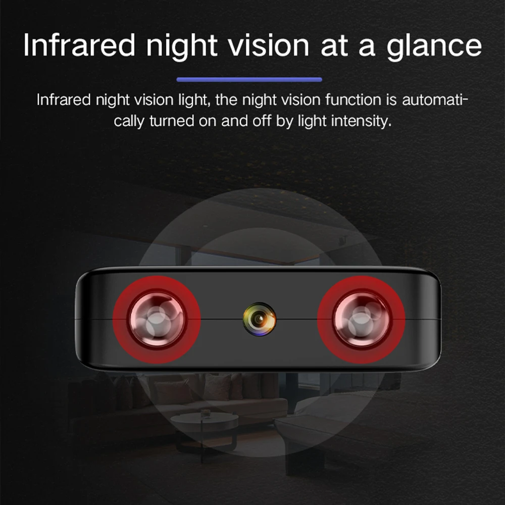 8.Super mini camera, only 1.1x0.4x1.1in (2.9x1.1x2.9cm), perfect for home security camera, housekeeper/nanny camera.