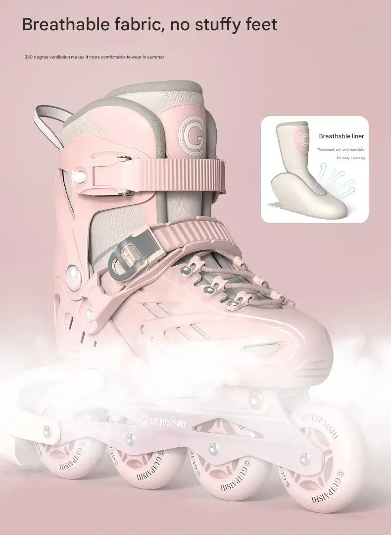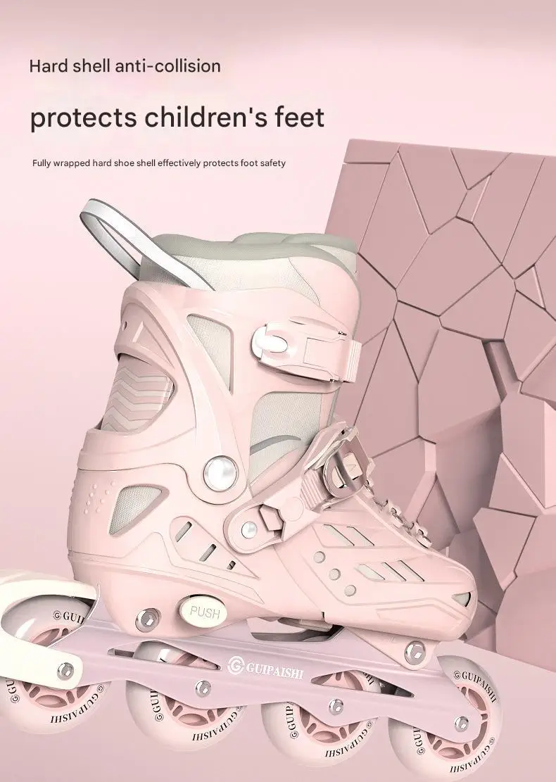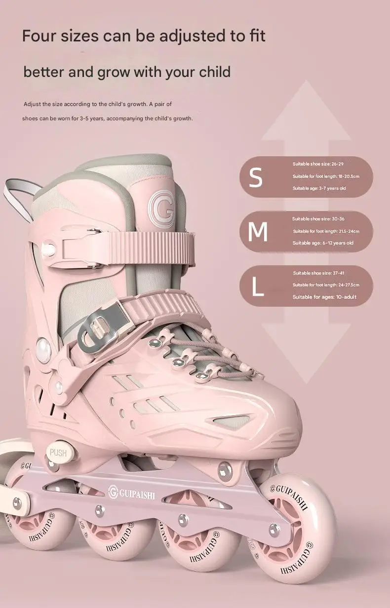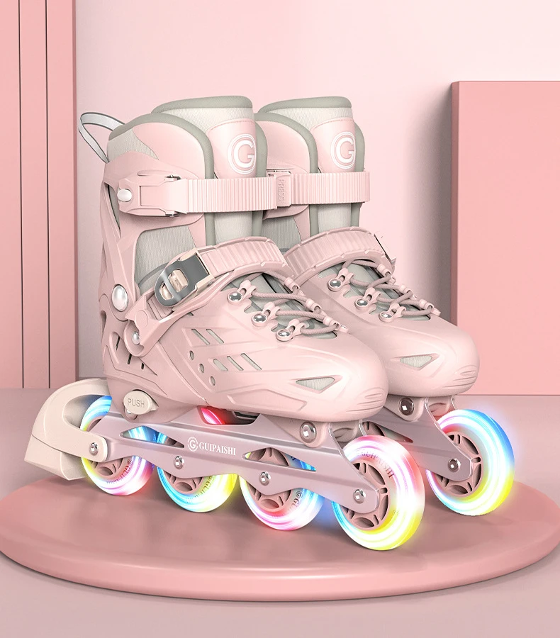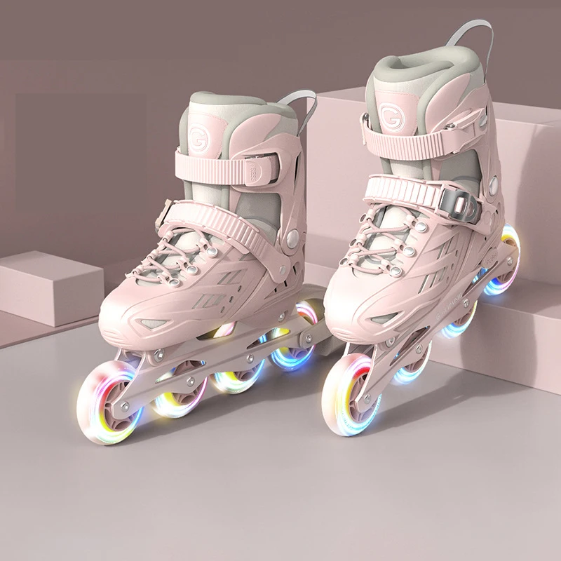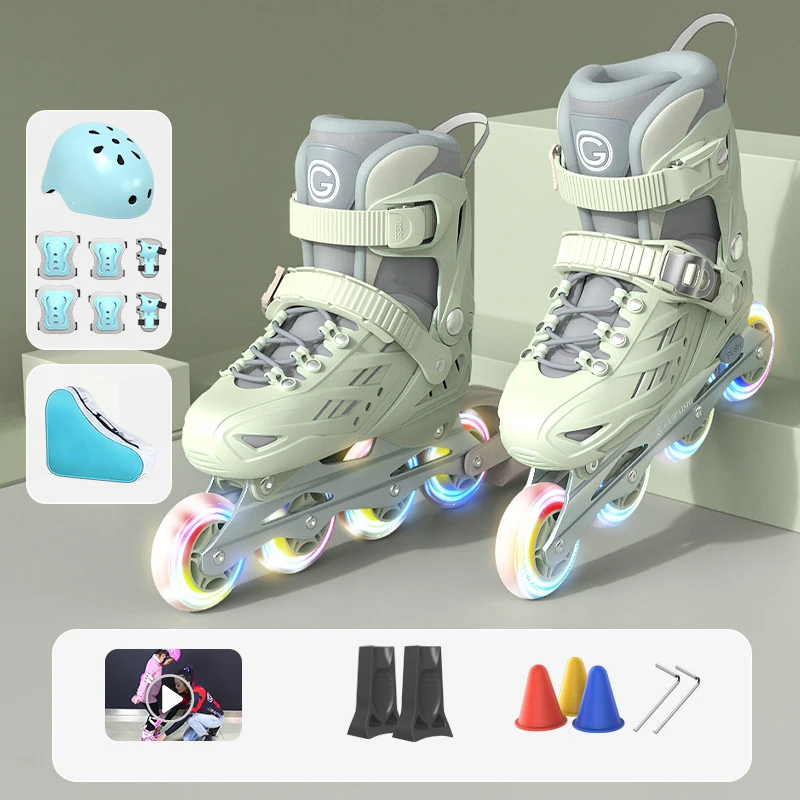 Inline Roller Skates With Helmet, Elbow And Knee Pads Shoe Bag Set Flash 4 Wheels Sneakers For Boys Girls Adjustable Skate Shoes