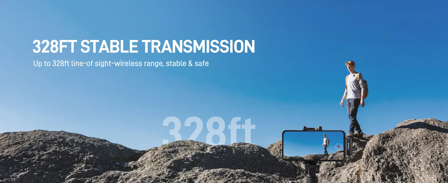 Up to 328ft line-of-sight-wireless audio range ensures a stable transmission of audio. This means that you can move around freely without compromising the quality of the audio. It is perfect for live streaming, video recording, and street interviews. (Only in an open outdoor environment up to 328ft, when indoors with obstacles and walls blocking the signal, or when facing away from the receiver, the wireless connection distance is less than 164ft.)