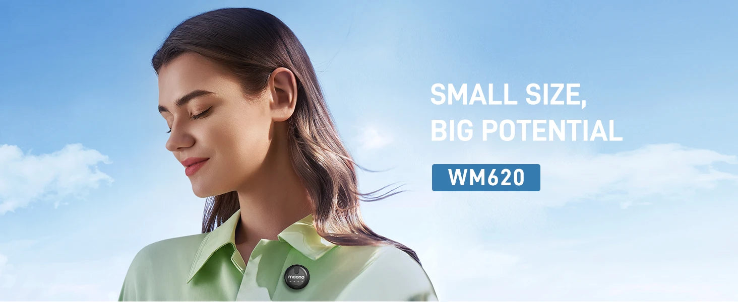 The Maono WM620 is a wireless Lavalier microphone that's perfect for content creators on-the-go